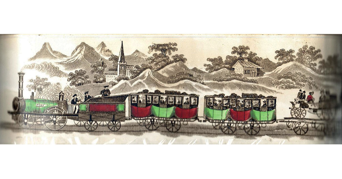 Au XIXe siècle, la production britannique de céramiques célébrant les événements clés de l’histoire du chemin de fer a été extrêmement importante, variée et a pris de nombreuses formes telles que chopes, pots, pichets, assiettes, plats, services à thé, etc. À l’inverse de la production française, plus modeste, qui s’est concrétisée principalement sous la forme d’assiettes à dessert1.